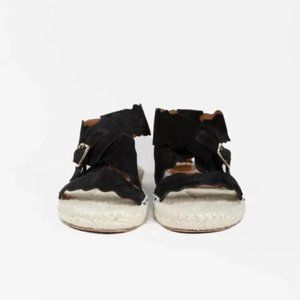 Chloé Lauren Scalloped Black Suede Espadrille Sandals