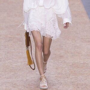 Chloé White Linen Blend Butterfly Lace Mini Skirt