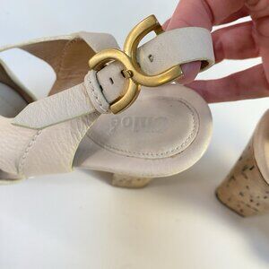 Chloe Cream Leather Renna Cork Sandals Size 39.5