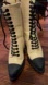 Worn twice excellent condition Elegant lace-up boots with a chic cream and brown design. Features a stylish brown accent. Perfect for versatile wear. Excellent condition worn twice.