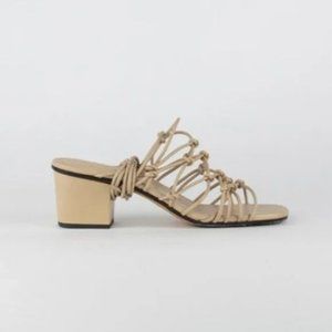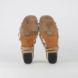 Chloe’s Jamie comes in beautiful lace-up sandals of tan leather. These sandals feature a block heel, round and open toes. Lace these sandals up to your ankle and throw together the perfect summer look.