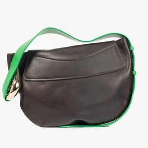 Chloe Kiss Off Brown Leather Green-Strap Shoulder Bag