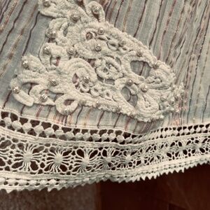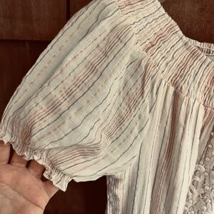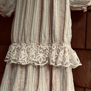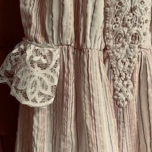 Chloe Laetitia Paris L Peasant Striped Gauze Romper Lace Crochet Off Shoulder