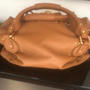 Beautiful Camel Leather Front Pocket Satchel Bag, brand new never worn, Excellent condition, Leather Camel colour, Lining Leather, Padlock and Key included, Model : Paddington Front Pocket Gold Tone Brass Hardware, Dimensions: 15w x 12 h , outside flap pocket with bucket closure, chunky lock on the front, Made in Italy, Retails: 2,225.00, serial #02-06-53 Item ships out same day