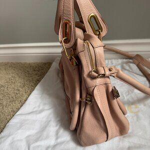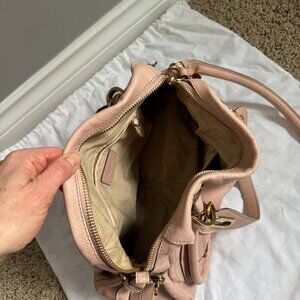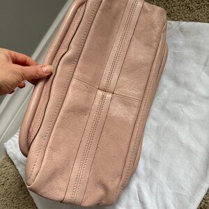 Pink Leather Shoulder Bag with Shouler Strap and flat handles