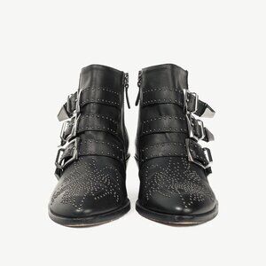 Chloe Susanna Black Studded Buckle Biker Ankle Boots