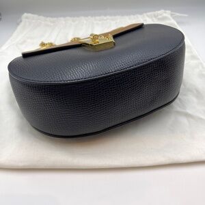 Chloe drew chain leather shoulder crossbody bag navy blue and camel women
