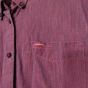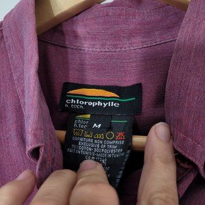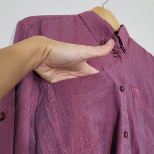 Chlorophylle Long Sleeve Button-Down Shirt Blouse Top Maroon Roll Tab Sleeves Casual Outdoors Hiking Adventure Gorpcore
