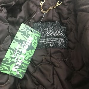 Awesome corduroy jacket in chocolate brown colour. Gold hardware (buttons, zippers). Rhinestone details add some bling. Insulated lining (warm enough for chilly days in the spring or fall). Zipper front. Cool embroidered details. Buttons have slight tarnish/antique look (see pic). Euro size 40 (size large). Brand new, with tags attached. I purchased this jacket years ago from a boutique in Toronto, and never wore it. Y2K era. The matching pants are listed in my closet as well. Smoke free home ❤️ Please ask any questions about my items. Happy to consider any reasonable offers. ☺️