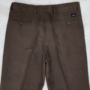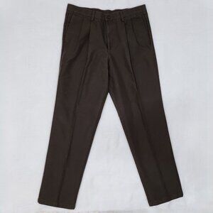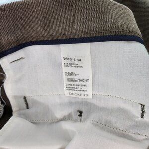 Dockers Classic fit Chocolate Brown Pleated Trousers for Men. 36 W x 34L. Cotton and Polyester blend. Pockets front and back.Zip/button fly. Like new preloved condition.12.5 inches rise aprox., 33 inches inseam aprox. 43 inches outseam aprox.