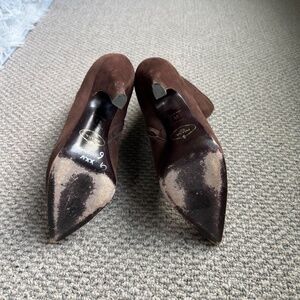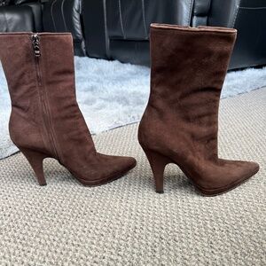 I’m normally 6.5 with wider front of feet these fit pretty well for me . Suede Chocolate brown.