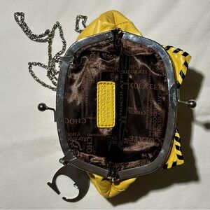 Brown faux leather shoulder bag from Chocolate New York. Features a clasp-style closure on the, gold-tone hardware, and plenty of room inside for daily essentials. Versatile and great for everyday use. In good used condition.