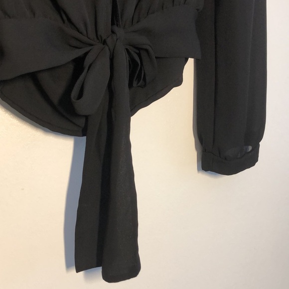 Chocolate Womens Sheer Blouse Size L Wraparound Black Formal