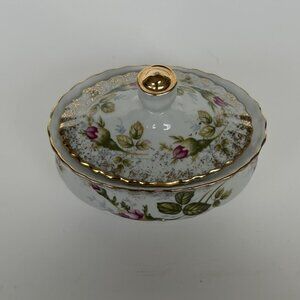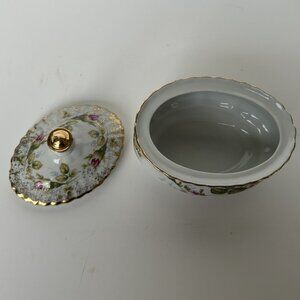 Chodzierz Floral Oval Trinket Oval Bowl with Lid, Porcelain, Floral Pattern,