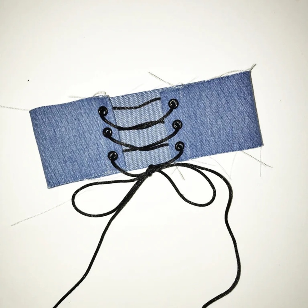 Frayed lace up jean choker light blue 11.5 inch long with 36 inch cord