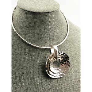 Nice High Shine Finish Choker Style Slider Necklace. Three Round Hammered Discs that graduate from 1 3/8" to 1 3/4" to 2 1/4" in diameter. Diameter of collar is 5" with adjustability, 4" adjustable opening at chain. Cable chain with a 3" extension and lobster clasp closure. See Video. NWOT. In excellent condition. No exchanges or refunds.