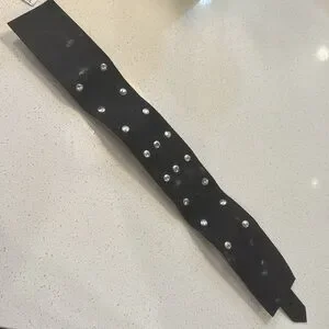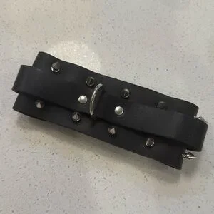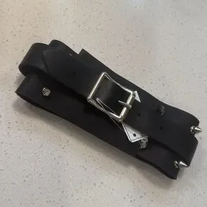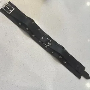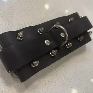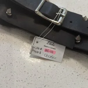 New - with tagss. Black leather studded choker with ring. Retails for $68.95. Will fit neck circumference neck circumference or 14.5” to 18”.