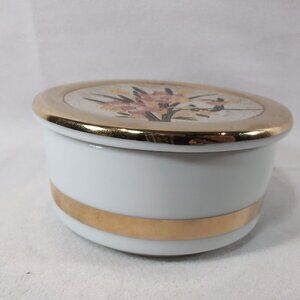 Chokin 24K Gold Edged Trinket Box Japan Hummingbird Flower Floral Jewelry Lilies