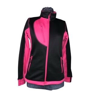 This Choko jeep jacket is in very good preloved condition. Featuring a color block design with black and pink panels. It has a full zip front, a stand-up collar, and zippered pockets. Ends of sleeves have holes for thumbs. Interior is black and has 2 deep pockets. Quality made. Designed in Canada. Main body is 100% polyester. Machine wash cold and tumble dry low. I was thinking of trading my Mustang in for a Jeep but changed my mind. No longer need the jacket!
