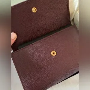 Encased in the exquisite bubble pattern of burgundy calfskin, this continental wallet inspires a carefree attitude and joie de vivre. Here, sophisticated burgundy leather is enhanced by warm rose gold-toned metal accents. This Chopard wallet features 12 card slots, 2 compartments for paper money and 1 zipped compartment for coins, measuring 10.5cm (h) x 19cm (l) x 3cm (w). It’s brand new, comes with box, ribbon and gift bag. Perfect gift for Christmas