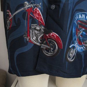 Choppers Urban Coast Men's Shirt Button Up Blue Motorcycle Graphics Size XL