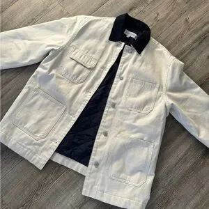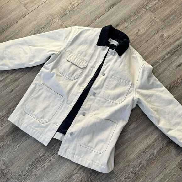 Cream and Navy Chore coat #chorecoat #denimforum #aritzia