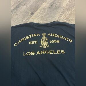 Christian Audigier Black Short Sleeve Tee with Gold Accents