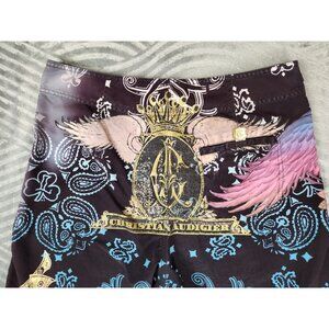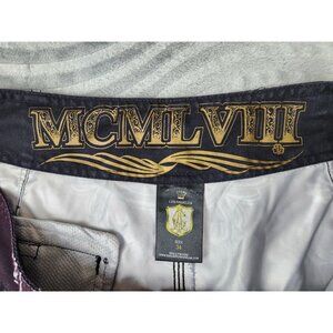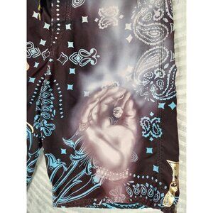 Christian Audigier Blow Smoke Board Shorts Size 34 Y2K Vintage Ed Hardy Skull