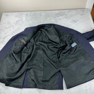 Christian Dior 100% Wool Suit Set Navy Blue Pin Stripe Men's Sz 56 Blazer & Pant
