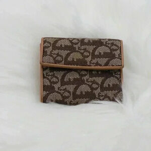 Compact brown Oblique canvas wallet with brown leather trim.