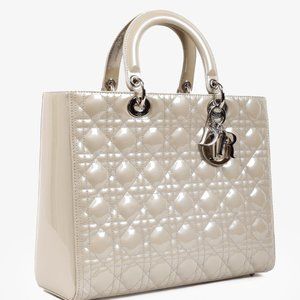 Christian Dior Large Pearl Taupe Patent Leather Lady Dior