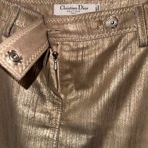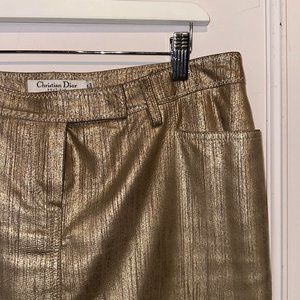 Christian Dior Metallic Gold Goat Suede Skirt