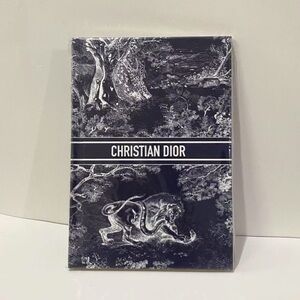 Elegant Christian Dior notebook in black and white. Features intricate design with a lion motif.