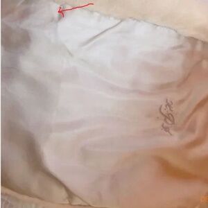 See the pics for details. There is a monogram on the inside lining. There is a faint water line on the lining but no tears, or stains. ( see pic with arrow showing faint line)