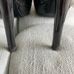 Christian Dior black patent leather platform heel boots with silver hardware detail on the side, zipper closure, leather outsoles. Made in Italy. Very good used condition with minimal signs of wear. Wear to the outsoles and a few small areas on the platform and heels near the bottom that show wear. Zippers are a bit stiff. Size 35. No box, no dust bag, no cards, no receipts. Please see photos, measurements are for reference only. Reasonable offers welcome!
