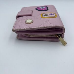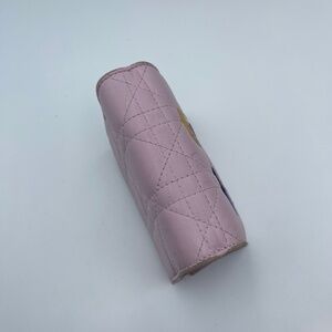 Christian Dior Pink Cannage Quilted lambskin leather lady patches wallet w/zip