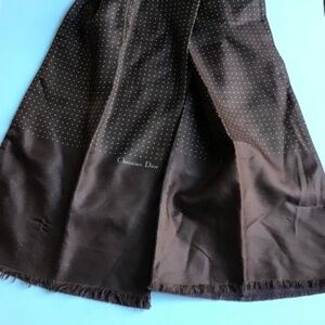 Christian Dior Reversible silk & wool unisex scarf, brown with mini dots pattern