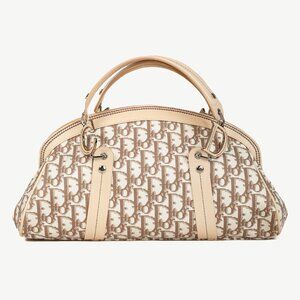 Christian Dior Vintage Flowers Beige Monogram Canvas Embroidered Frame Bag