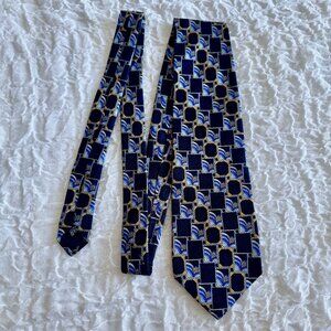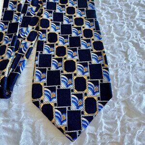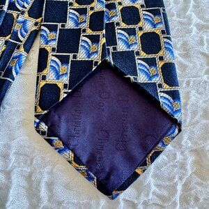 Vintage Christian Dior ornate patterned navy blue and yellow tie in excellent vintage condition. 100% silk, made in Canada. Measures 3.75 inches at widest point. Cat friendly, nonsmoking home.