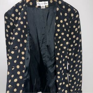 Christian Dior Vintage Silk Blazer Jacket Women's Size 8 Black Tan Polka Dot Top