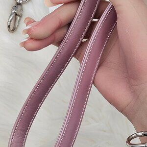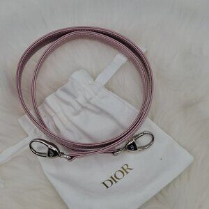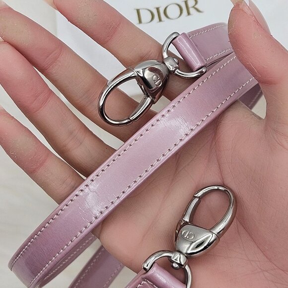 Add a touch of elegance to your favorite accessory with this authentic Christian Dior bag strap. Crafted from exquisite patent leather in a delicate peony pink or lavender hue, this strap is designed to complement various Dior styles