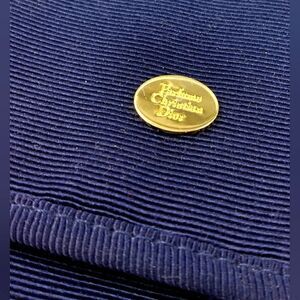 Navy blue Christian Dior makeup bag,has a gold medalion "Parfums Christian Dior" inside has a zip pouch,and a mirror