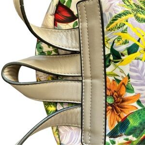 Stylish floral print backpack with vibrant colors. Perfect for adding a pop of color to any outfit.
