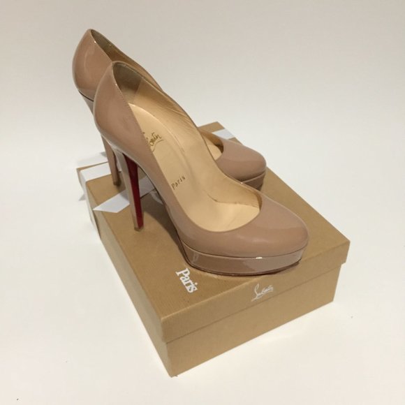 Very good condition - purchased in 2011, has been brought to a cobbler to add protective red rubber on the soles. Has a very tiny scuff close to the heel tip on the left shoe. Can provide more photos if requested. This style is currently discontinued, and would be great addition to amp up any outfit! Comes with box and 1 dustbag.