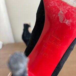 Super cute mesh, suede, and leather booties from French footwear designer Christian Louboutin. Made in Italy and featuring a zipper closure on the back, padded insole and 4.5 inch heels.