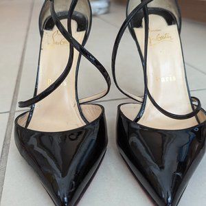 Christian Louboutin Black Patent Leather Uptown Ankle Strap Pumps