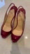 Christian Louboutin shiny burgundy leather slingback heels with peep-toe. Condition as shown.