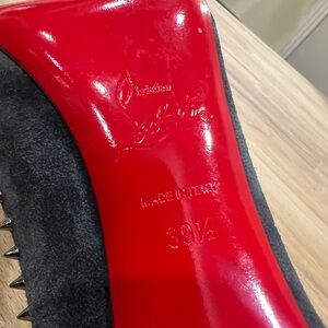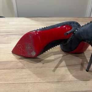 Zero wear on upper or insoles, no studs missing, suede in perfect condition, heel tips show barely any wear, only evidence of any wear is red soles.
