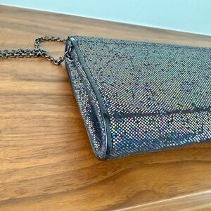 This is the perfect evening bag. The sparkle of the sequins give it a fun and multi-coloured vibe. The chain and the hardware are neutral as well so no need to match or worry about matching with your jewelry, this bag goes with evdery outfit. The spacious interior fits everything from your phone to your makeup.
