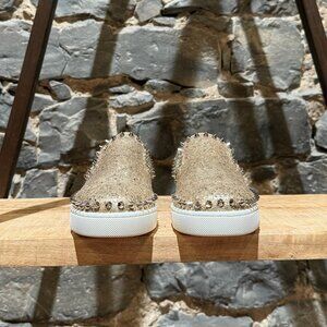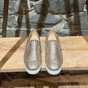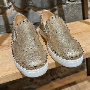 Christian Louboutin Glitter Gold Pik Boat Spike Slip-on Sneakers